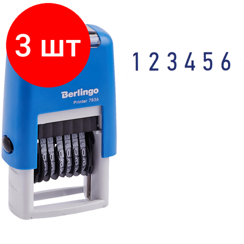 Комплект 3 шт, Нумератор мини автомат Berlingo "Printer 7836", 6 разрядов, 3мм, пластик, блистер