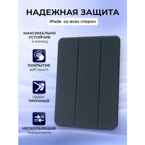 Чехол на iPad Air 11 M2 Air 11 M3 Air 4 Air 5 Smart Folio, темно-серый, с защитой камеры и soft touch покрытием