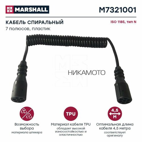 MARSHALL M7321001 M7321001_кабель спиральный! 7/7 Type N, Lmax4500, 24V 4.5m DIN1185 с двумя пластик. штекерами\