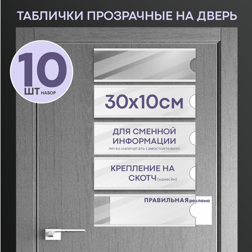 Табличка на дверь со сменной информацией - 30х10 см. 10 шт. (ПЭТ 1 мм. + скотч)