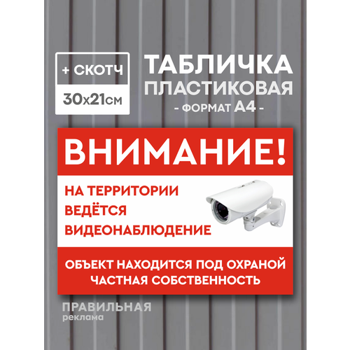 Табличка А4 "Частная собственность / Ведётся видеонаблюдение" ПВХ 3 мм. + скотч