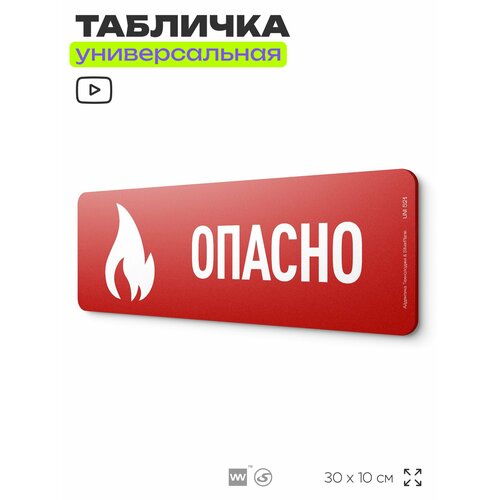 Табличка "Опасно", на дверь и стену, информационная, пластиковая с двусторонним скотчем, 30х10 см, Айдентика Технолоджи