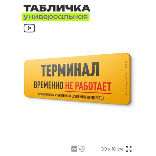 Табличка "Терминал временно не работает", на дверь и стену, информационная, пластиковая с двусторонним скотчем, 30х10 см, Айдентика Технолоджи