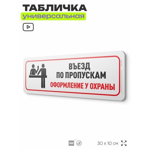 Табличка "Въезд по пропускам", на дверь и стену, информационная, пластиковая с двусторонним скотчем, 30х10 см, Айдентика Технолоджи