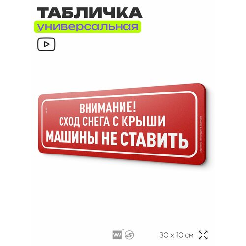 Табличка "Сход снега с крыши, машины не ставить", на дверь и стену, информационная, пластиковая с двусторонним скотчем, 30х10 см, Айдентика Технолоджи