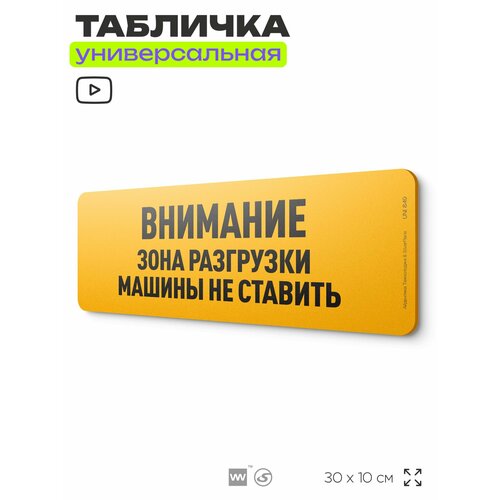 Табличка "Внимание! Зона разгрузки, машины не ставить", на дверь и стену, информационная, пластиковая с двусторонним скотчем, 30х10 см, Айдентика Технолоджи