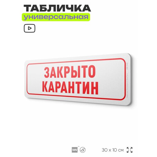 Табличка "Закрыто, карантин", на дверь и стену, информационная, пластиковая с двусторонним скотчем, 30х10 см, Айдентика Технолоджи
