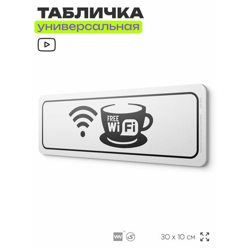 Табличка "Free Wi-Fi", на дверь и стену, информационная, пластиковая с двусторонним скотчем, 30х10 см, Айдентика Технолоджи