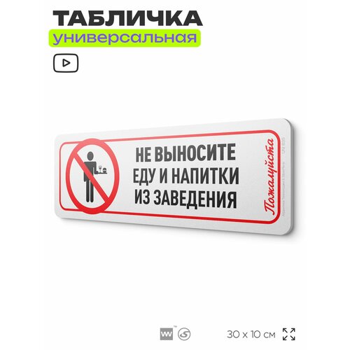 Табличка "Не выносите еду и напитки из заведения", на дверь и стену, информационная, пластиковая с двусторонним скотчем, 30х10 см, Айдентика Технолоджи