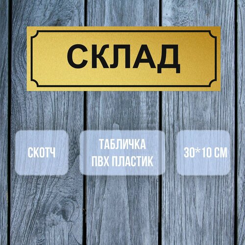 Табличка на дверь, Склад, Материал ПВХ пластика 3 мм. 10х30 см. Цвет матовое золото.