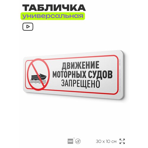 Табличка "Движение моторных судов запрещено", на дверь и стену, информационная, пластиковая с двусторонним скотчем, 30х10 см, Айдентика Технолоджи