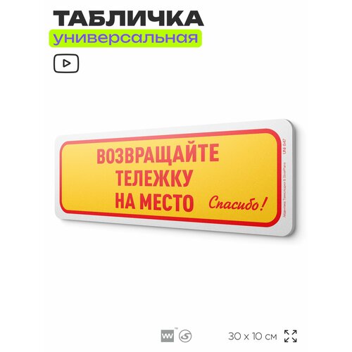 Табличка "Возвращайте тележку на место", на дверь и стену, информационная, пластиковая с двусторонним скотчем, 30х10 см, Айдентика Технолоджи