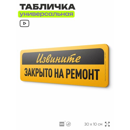 Табличка "Закрыто на ремонт", на дверь и стену, информационная, пластиковая с двусторонним скотчем, 30х10 см, Айдентика Технолоджи