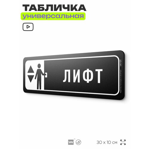 Табличка "Лифт", на дверь и стену, информационная, пластиковая с двусторонним скотчем, 30х10 см, Айдентика Технолоджи