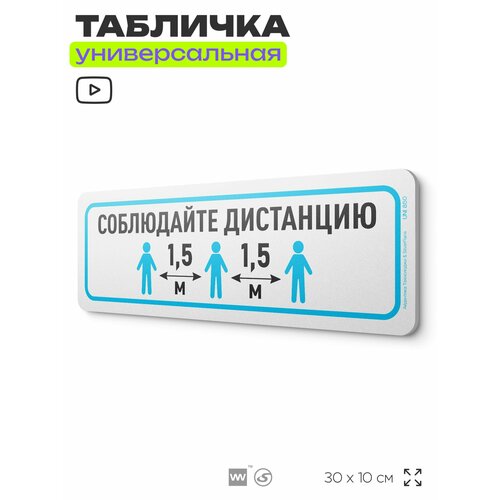 Табличка "Соблюдайте дистанцию", на дверь и стену, информационная, пластиковая с двусторонним скотчем, 30х10 см, Айдентика Технолоджи