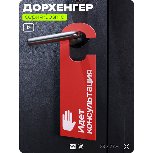 Дорхенгер "Идет консультация", табличка на ручку двери, пластиковая, серия COSMO, Айдентика Технолоджи