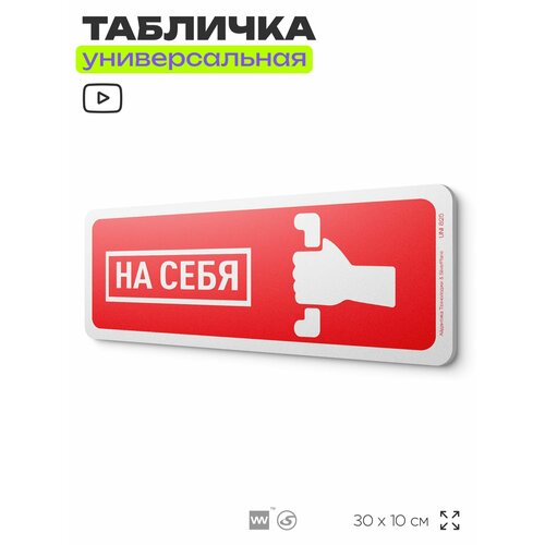 Табличка "Вход, на себя", на дверь и стену, информационная, пластиковая с двусторонним скотчем, 30х10 см, Айдентика Технолоджи