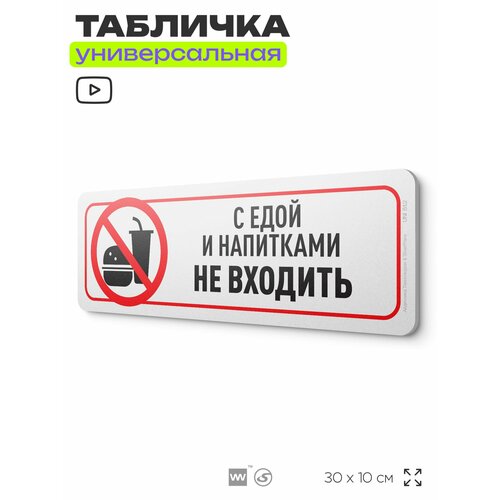 Табличка "С едой и напитками не входить", на дверь и стену, информационная, пластиковая с двусторонним скотчем, 30х10 см, Айдентика Технолоджи