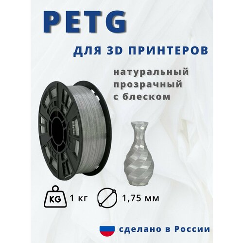 Пластик для 3д печати "НИТ", Petg натуральный прозрачный с блеском (0025) 1кг
