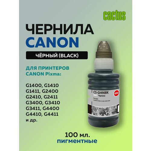 Чернила Cactus GI-490 черный пигментный 100 мл для Canon Pixma G1400, G2400, G3400