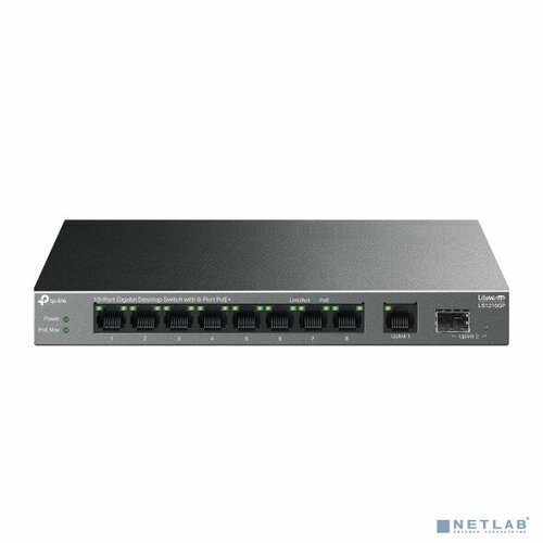TP-Link SMB Сетевое оборудование TP-Link LS1210GP Настольный коммутатор с 9 гигабитными портами (8 портов PoE+) и портом SFP