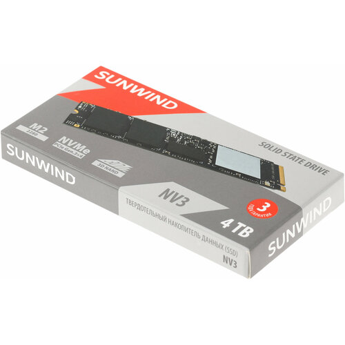 SSD накопитель SunWind NV3 SWSSD004TN3 4ТБ, M.2 2280, PCI-E 3.0 x4, NVMe, M.2, rtl