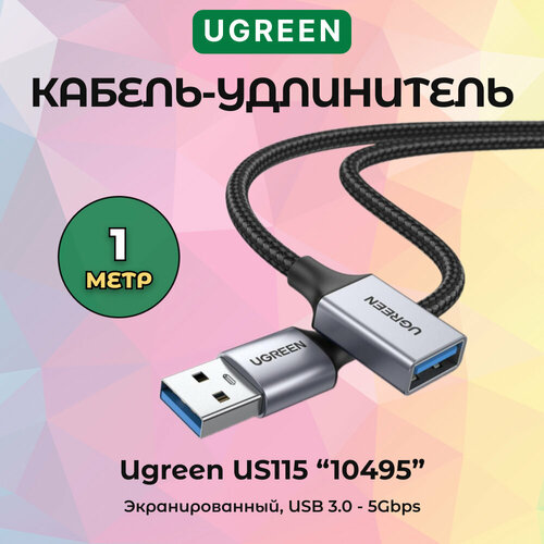 Кабель удлинитель Ugreen US115, USB-А 3.0, 1m черный (10495)