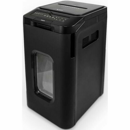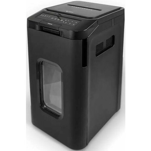 Шредер Heleos АП55-4 черный с автоподачей (секр. P-4) фрагменты 400лист. 55лтр. скрепки скобы пл. карты