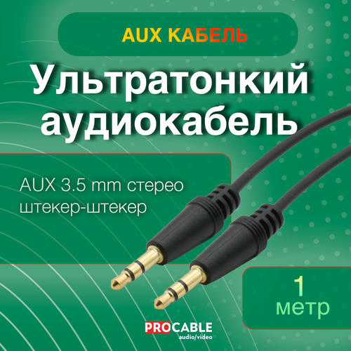 AUX - JACK 3.5 мм 1 м. Шнур аудио AUX - JACK 3.5 мм штекер-штекер стерео, черный 1 метр