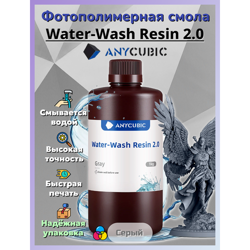 Фотополимерная смола Anycubic Water Wash Resin 2.0 водосмываемая, серая, 1кг