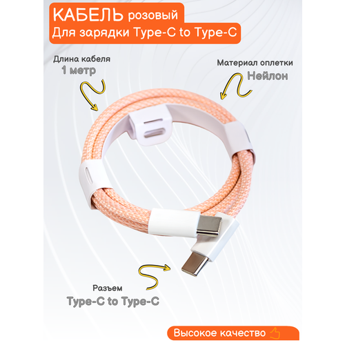 Кабель для зарядки телефона Type C 1м, нейлоновая оплётка, розовый