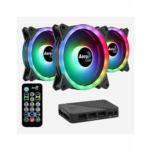 Вентилятор Aerocool Duo 12 Pro (3x120мм, 19.7dB, 1000rpm, 6-pin, подсветка, контроллер, пульт д/у) RTL