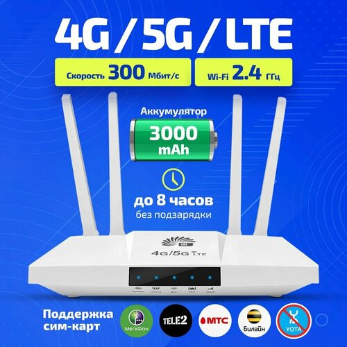 WI-FI роутер с поддержкой сим-карт, wifi роутер для дома, 4G 5G LTE роутер с аккумулятором 3000 mAh, вай фай роутер