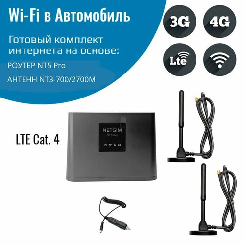 WiFi роутер для автомобиля 4G интернет NT5 Pro с двумя антеннами NT3-700/2700M