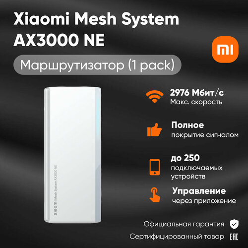 Беспроводной маршрутизатор роутер Xiaomi Mesh System AX3000 NE(1 pack) RU, белый DVB4465GL