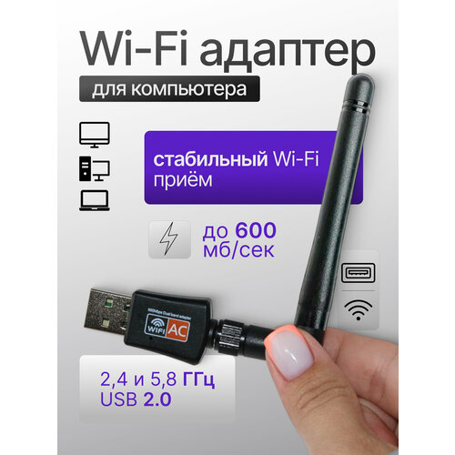 WiFi Адаптер для компьютера USB, Вай Фай приемник 5G, 600 Мбит/с wi-fi
