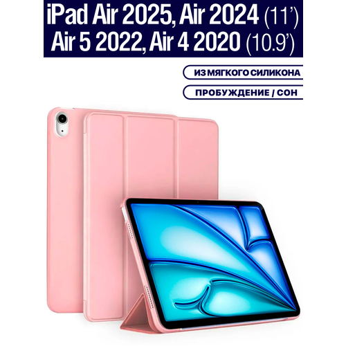 Чехол на iPad Air 11 M2 Air 11 M3 Air 4 Air 5 Smart Folio, силиконовый, розовый, с защитой камеры и soft touch покрытием