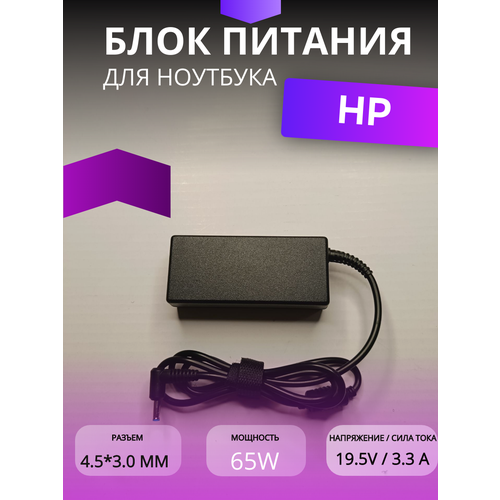 Блок питания для ноутбуков HP, 19,5 В, 3,33 А, 65 Вт, штекер 4,5 х 3,0