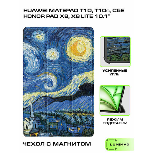 Чехол для Huawei MatePad T10, T10s, MatePad C5e, Honor Pad X8 X8 Lite 10.1" с магнитом с рисунком Ночь