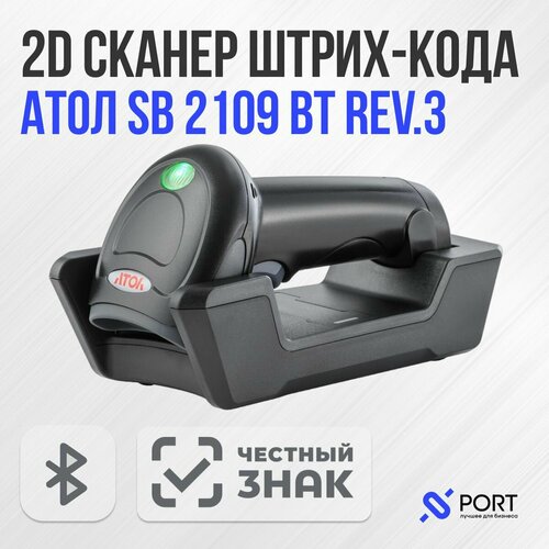 Сканер штрих кода Атол Sb2109 bt (rev.3), беспроводной, 2D, ПВЗ, Честный знак, ЕГАИС