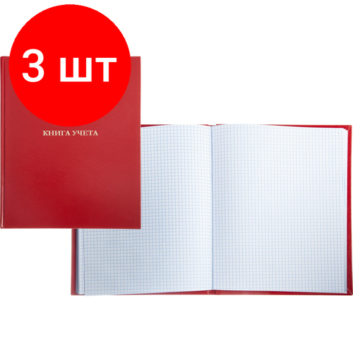 Комплект 3 штук, Книга учета 96л. в клетку офсет, обл. бумвинил красный