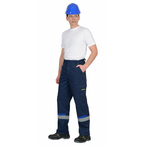 Брюки рабочие "бостон" темно-синий с васильковой и черной отделкой р. 48-50/182-188