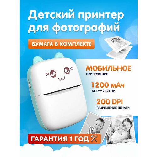 Портативный мини принтер для телефона Kid Joy, 200DPI, Bluetooth 5.1, APP (C9) Blue