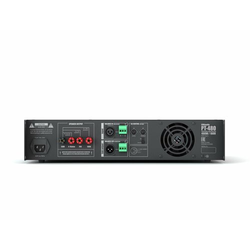 CVGAUDIO PT-480 - Профессиональный высококачественный усилитель мощности для систем трансляции музыки и речевого оповещения, 480W/100V, балансный XLR/Euro Block вход, линкующий XLR /Euro Block балансный выход, 2U.