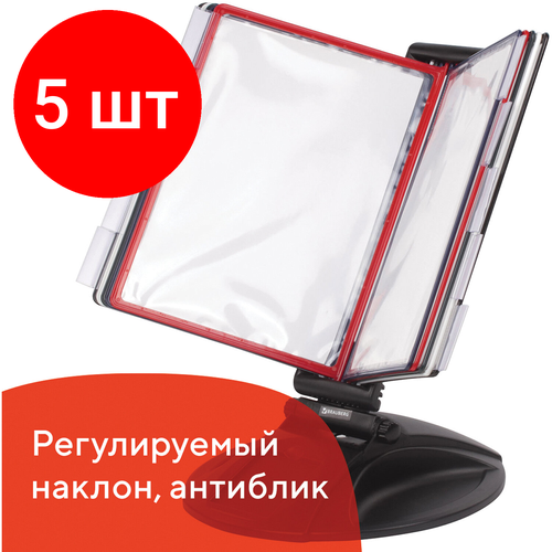 Комплект 5 шт, Демосистема настольная на 10 панелей, с 10 цветными панелями А4, черная, BRAUBERG "SOLID", 236714
