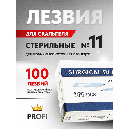 Сменные прямые стерильные лезвия для скальпеля косметолога №11, 100 шт. из высокоуглеродистой стали