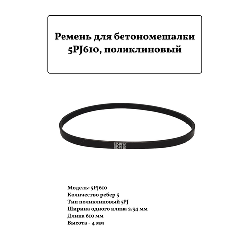 Ремень 5PJ-610 12 мм для бетономешалки / бетоносмесителя Лебедянь СБР-125 / 132 / 150 / 152 / 170 / 172, Atikа (резиновый)