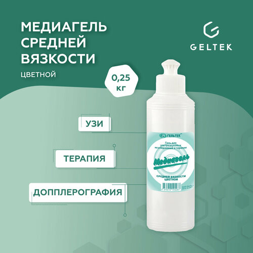 Гель универсальный для УЗИ, допплерографии и физиотерапии медиагель Гельтек средней вязкости цветной 250 мл