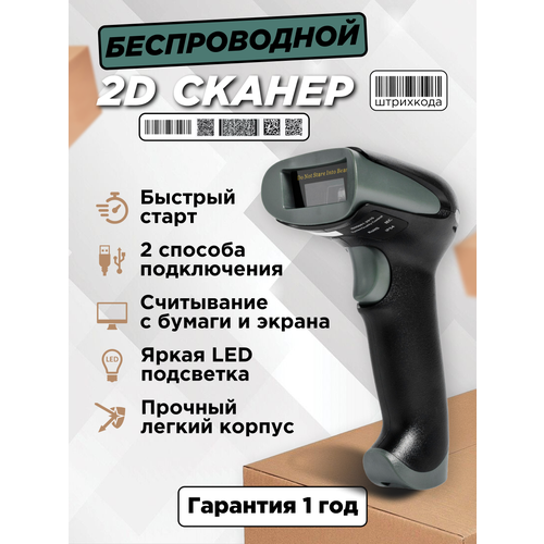 Сканер штрих-кодов 2D беспроводной для маркировки, ЕГАИС, Честный знак, QR, 1C, Frontol, Атол, Меркурий, Эвотор и др