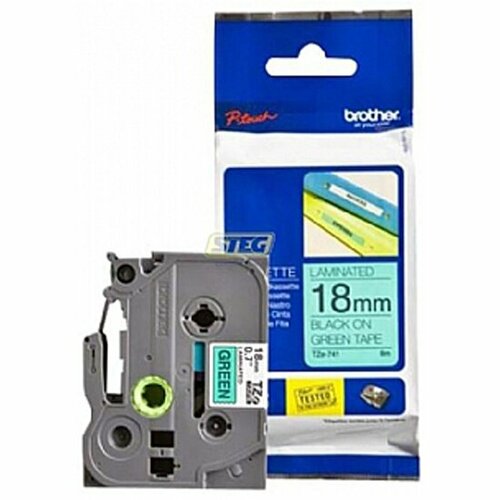 Наклейка ламинированная Brother TZ-E741 (18 мм черн/зелен)